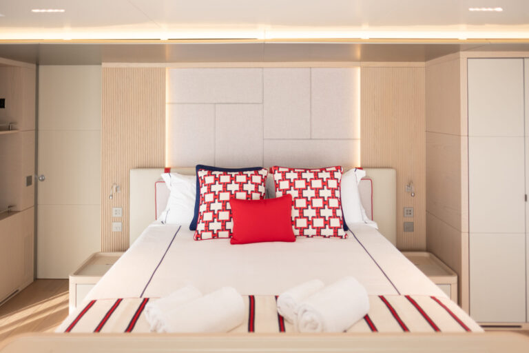 TOLEMAI، يخت Sanlorenzo 44 X-Space، يجمع بين الأناقة الإيطالية والتصميم المبتكر ليمنح أقصى درجات الراحة والتواصل السلس مع البحر. يوفر الطابق الخاص بالمالك إطلالات بانورامية بزاوية 180°، وجناح رئيسي أمامي مع حمام فاخر، وتراسات حصرية. يستمتع الضيوف بجناحين VIP، وكابينتين توأم، وكابينة مخصصة للأطفال. صالات رحبة، أسطح خارجية متعددة الاستخدامات، مسبح، صالة رياضية، ومساحات طعام تتسع لـ 12 شخصاً تجعل من TOLEMAI الخيار الأمثل للإبحار الخاص أو التأجير الفاخر.